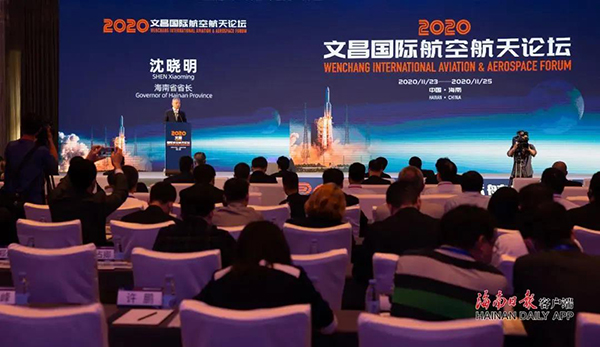 11月24日,2020文昌国际航空航天论坛在海口开幕,会议探讨航空航天产业发展与合作。海南省省长沈晓明、国家航天局副局长吴艳华出席并致辞。