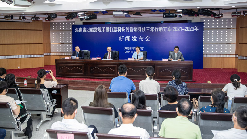 6月23日,海南省科学技术厅组织召开新闻发布会,介绍《海南省以超常规手段打赢科技创新翻身仗三年行动方案(2021-2023年)》有关情况并回答记者提问。