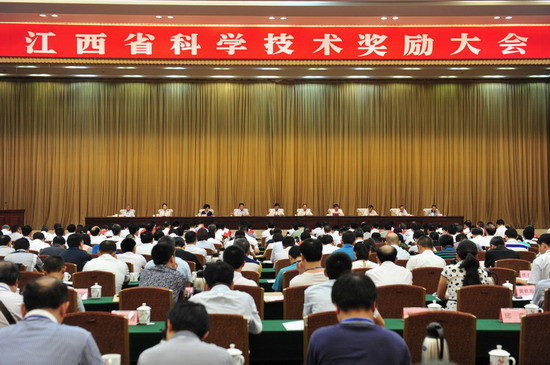 为贯彻落实党的十八大,十八届三中、四中全会和江西省委十三届十一次全会精神,进一步动员和激励江西省广大科技工作者积极投身“大众创业、万众创新”伟大实践,努力为创新驱动发展和建设创新型江西省份做出新的更大贡献,大力营造重视创新、鼓励创新、支持创新的浓厚社会氛围,形成“发展升级、小康提速、绿色崛起、实干兴赣”的强大合力,2015年7月27日,江西省委、省政府在南昌隆重召开江西省科学技术奖励大会,表彰荣获2014年度江西省科学技术奖的单位和个人,并部署当前和今后一个时期江西省科技工作。江西省委书记强卫出席大会。江西省长鹿心社代表江西省委、省政府发表重要讲话。江西省委副书记、省政府常务副省长莫建成主持会议。江西省领导黄跃金、赵爱明、马志武和中国工程院院士石屏、张文海、颜龙安出席。江西省政府副省长谢茹宣读《江西省人民政府关于2014年度江西省科学技术奖励的决定》。江西省委书记强卫、江西省长鹿心社等出席大会的江西省领导为2014年度江西省科学技术奖获奖代表颁奖。2014年度江西省科学技术进步奖一等奖获得者、江西农业大学副校长贺浩华教授代表全体获奖人员发言。