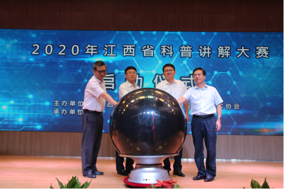8月16日,由江西省科技厅、江西省科协主办,江西科技馆承办的2020年江西省科普讲解大赛决赛在省科技馆新馆举行,来自全省17个代表队的30名选手进行了同场竞技。大赛以“科技战疫、创新强国”为主题,旨在深入实施创新驱动发展战略,普及科学知识、弘扬科学精神,是目前全省范围最大、水平最高、代表性最强的科普讲解比赛。江西省科技厅党组书记、厅长万广明出席大赛并致辞。江西省科学技术协会主席史可,党组成员、副主席宋平岗,江西省科技厅党组成员、副厅长席宏共同启动大赛。