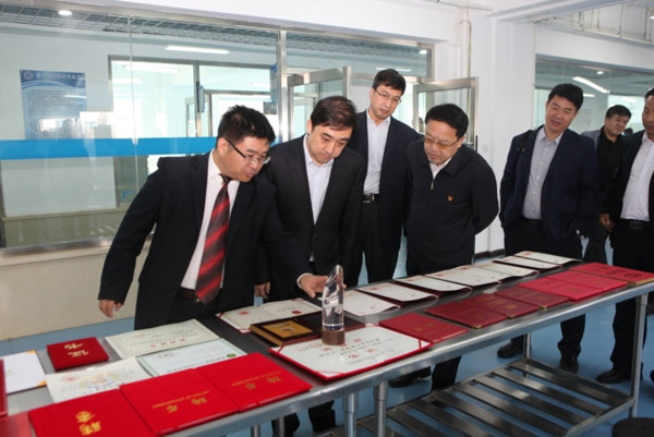 随后调研组又考察了能源与环境催化工程技术研究中心。长江学者特聘教授、化学化工学院院长赵震就中心的发展历程、人才团队、国家级重大科技攻关项目、科技成果转化等方面的工作进行了全面介绍。考察过程中,王大南厅长与科研人员进行了亲切交流,详细询问了科研工作进度和大型科研仪器设备的运行管理情况。王大南厅长对中心在能源与环境催化领域取得的成绩以及重点开发的柴油车尾气排放控制技术给予充分肯定。他指出,中心在落实科技成果转化、发挥科技创新平台作用等方面取得了很好成绩,希望中心继续发挥学科专业优势,突出需求导向、提供高水平科技供给,建设好中试基地,将熟化成果尽早转化成现实生产力。