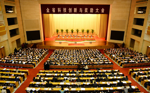 会上,印发了《山东省人民政府关于加快科技成果转化提高企业自主创新能力的意见(试行)》(鲁政发[2012]45号)和《山东省人民政府关于加强知识产权工作提高企业核心竞争力的意见》(鲁政发[2012]46号)。省委常委、常务副省长孙伟宣读了《山东省人民政府关于2012年度山东省科学技术奖励的决定》,除程林、赵振东获山东省科学技术最高奖外,“植物生殖器官的发育与激素调节”1项成果获山东省自然科学奖一等奖;“海洋生物蛋白资源制备系列功能寡肽和功能蛋白技术与应用”等2项成果获山东省技术发明奖一等奖;“大型快速高效数控全自动冲压生产线”等38项成果获山东省科学技术进步奖一等奖。