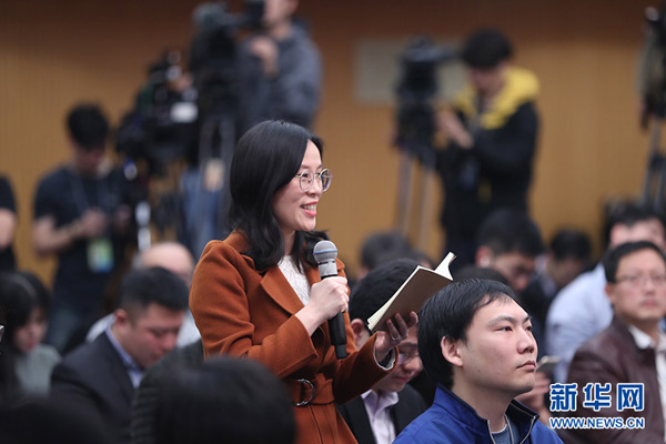十三届全国人大二次会议新闻中心3月11日(星期一)8时45分在梅地亚中心新闻发布厅举行记者会,邀请科技部部长王志刚、副部长李萌、战略规划司司长许倞、政策法规与创新体系建设司司长贺德方、资源配置与管理司司长张晓原就“加快建设创新型国家”相关问题回答中外记者提问。图为上海人民广播电台记者提问。新华网/中国政府网 刘厦 摄