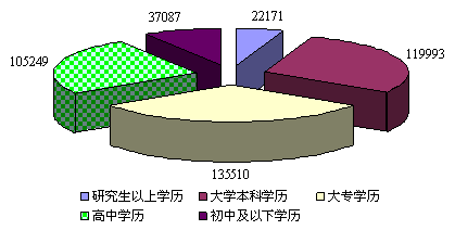 从咨询人员学历分析,大专学历的人数为13.6万人,占咨询从业人员总数的32.3%,大学本科学历为12万人,占咨询从业人员总数的28.6%。大学和大专学历总计人数为25.6万人,占咨询从业人员总数的60.8%。研究生以上学历为2.2万人,占咨询从业人员总数的5.3%。大专以上学历的从业人员占咨询从业人员总数为66.1%。