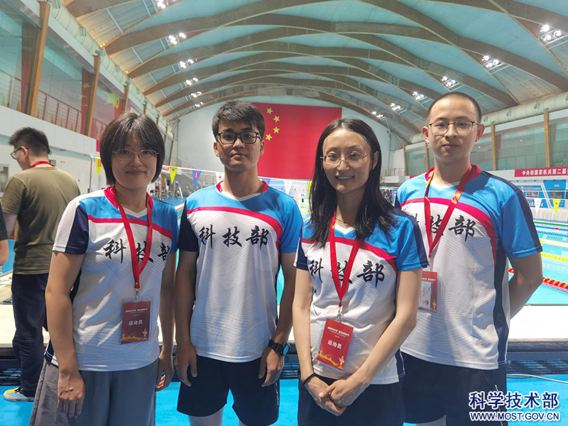 2023年7月19日,由中央和国家机关工会和国家体育总局联合举办的中央和国家机关第二届运动会之“游泳比赛青年组4*50米蛙泳接力”比赛在国家体育总局游泳训练馆举行。科技部代表队勇夺乙组第一名,创造了又一佳绩。