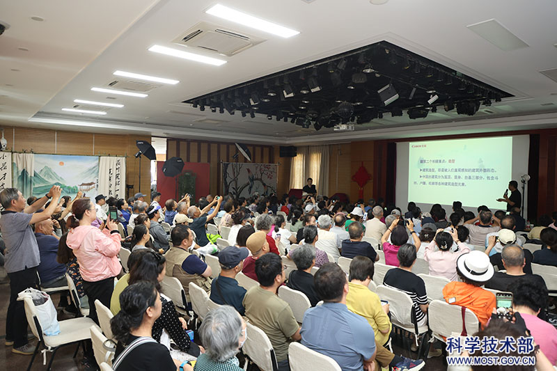 6月12日,由中国网老年大学联合科技部老年大学举办的“金色盛年 光影课堂”摄影公益大讲堂在科技部老年大学柳林馆活动站举行。来自科技部、国家统计局、国资委机械局、公安部等老年大学的近200名摄影班学员及摄影爱好者参加活动。此次活动旨在开阔视野、增进交流,为广大老年摄影爱好者提供一个学习、交流、提升的平台。