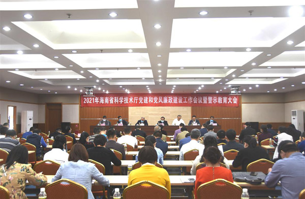2月22日上午,海南省科学技术厅召开2021年党建和党风廉政建设工作会议暨警示教育大会,海南省科技厅党组书记国章成,省科技厅党组成员、副厅长韦勇、赵庆慧、刘作凯,二级巡视员王贤、钟川,海南省纪委监委驻省工信厅纪检监察组组长戴磊雄及海南省科技厅机关和下属单位90多人参加了会议,会议由海南省科技厅党组成员、副厅长韦勇主持。
