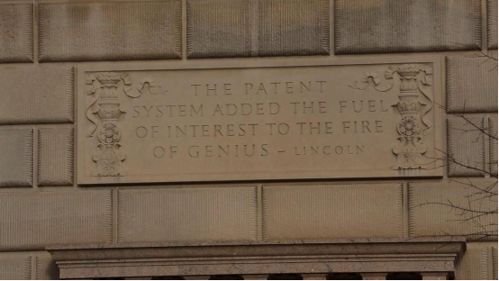 这是美国专利商标局曾经的驻地,也是今天美国商务部的所在地。在大门上篆刻着美国第十六任总统亚伯拉罕·林肯的一句话:“专利制度是给天才之火添加利益之油”。