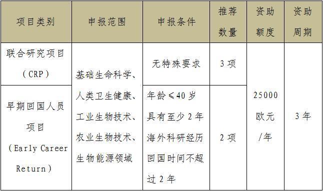 生物中心将组织专家进行评审,从全国提交的申请书中选送3项联合研究项目以及2项早期回国人员项目送交ICGEB进行全球范围评审,获资助学者将得到不超过25000欧元/年、3年共75000欧元之内的经费资助。