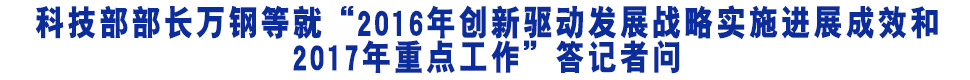 王冬梅:各位记者朋友,大家下午好。欢迎参加十二届全国人大五次会议记者会,本场记者会的主题是“2016年创新驱动发展战略实施进展成效和2017年重点工作”。今天我们非常高兴邀请到科技部部长万钢先生和秘书长徐建培先生,围绕这一主题回答大家的提问。下面先请万钢先生简要介绍情况。