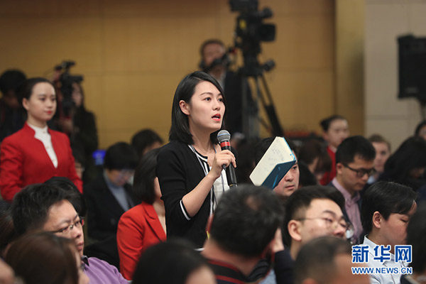中央电视台记者提问(新华网/中国政府网 陈杰 摄)