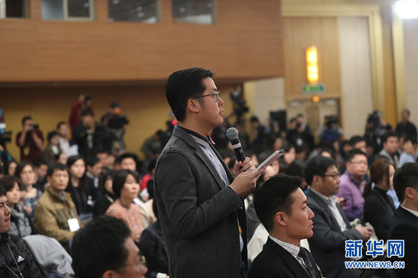 中国日报记者提问(新华网/中国政府网 陈杰 摄)