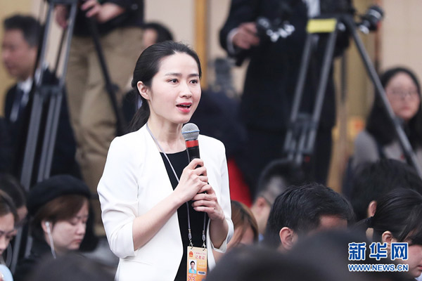 十三届全国人大二次会议新闻中心3月11日(星期一)8时45分在梅地亚中心新闻发布厅举行记者会,邀请科技部部长王志刚、副部长李萌、战略规划司司长许倞、政策法规与创新体系建设司司长贺德方、资源配置与管理司司长张晓原就“加快建设创新型国家”相关问题回答中外记者提问。图为中央广播电视总台央视记者提问。新华网/中国政府网 刘厦 摄