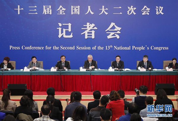 3月11日,十三届全国人大二次会议新闻中心举行记者会,邀请科技部部长王志刚、副部长李萌、战略规划司司长许倞、政策法规与创新体系建设司司长贺德方、资源配置与管理司司长张晓原就“加快建设创新型国家”相关问题回答中外记者提问。 新华社记者 沈伯韩 摄