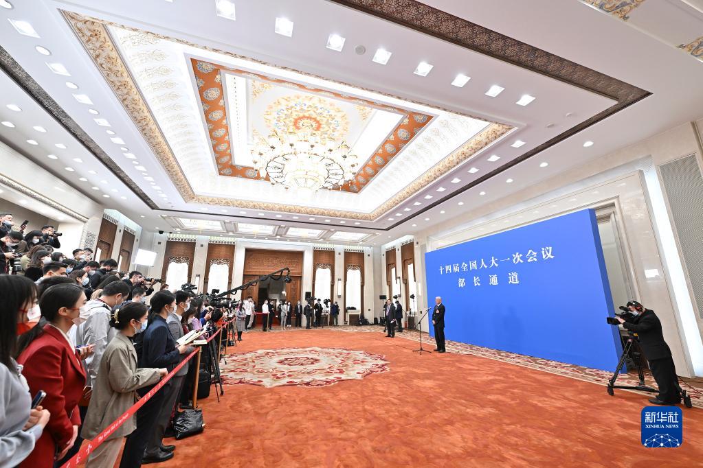 3月5日,第十四届全国人民代表大会第一次会议举行首场“部长通道”采访活动。新华社记者 刘金海 摄