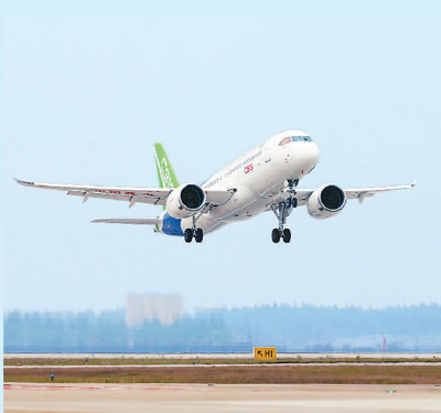 在航空领域,中国自主研制的C919大型客机首飞成功,这意味着中国实现了民机技术集群式突破,形成了中国大型客机研发核心能力,成为世界少数几个拥有研制大型客机能力的国家。