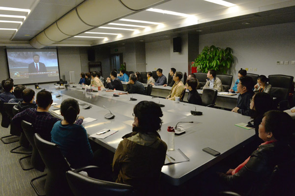 10月24日上午,中国共产党第十九次全国代表大会胜利闭幕。25日上午,在党的第十九届中央委员会第一次全体会议上当选的中共中央总书记习近平和中共中央政治局常委李克强、栗战书、汪洋、王沪宁、赵乐际、韩正,同采访十九大的中外记者亲切见面。信息中心党支部及时组织党员干部认真收听收看了十九大闭幕式相关报道和十九届中共中央政治局常委同中外记者见面会现场直播。