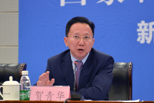 国家卫生健康委员会疾控局副局长贺青华回答记者提问(科技部信息中心 刘大铭 摄)