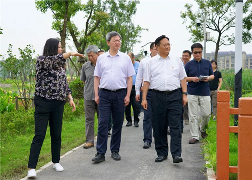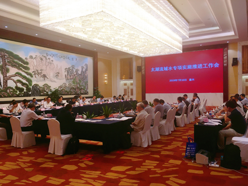 2019年7月10日,“水体污染控制与治理”国家科技重大专项(以下简称“水专项”)第一行政责任人、生态环境部副部长庄国泰带队赴嘉兴,对太湖流域水专项实施进展情况进行实地调研。水专项技术总师吴丰昌院士以及有关专家,生态环境部科技与财务司、水专项实施管理办公室、浙江省及江苏省生态环境厅、嘉兴市人民政府等相关负责同志参加调研。