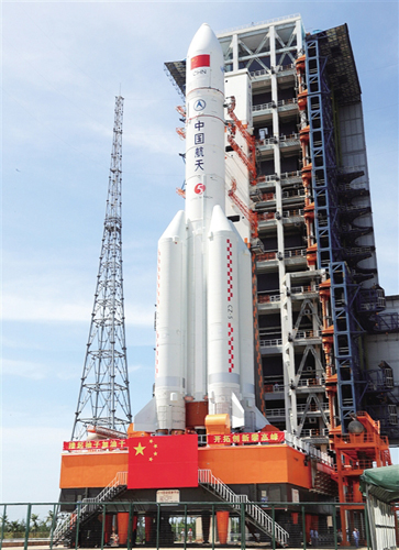 在海南文昌航天发射场拍摄的长征五号遥二火箭。 张文军摄 (新华社发)