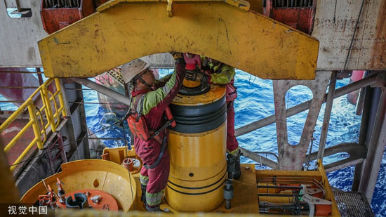 2022年5月10日,在海南莺歌海海域钻井平台,工人对我国首套国产化深水水下采油树设备进行安装。据了解,该设备是水下油气生产系统工程化示范项目的重要部分,标志我国深水油气开发关键技术装备研制迈出关键一步。该水下生产系统将用于开发东方1-1气田乐东平台周边的气藏,单井每年可产天然气约2亿立方米。