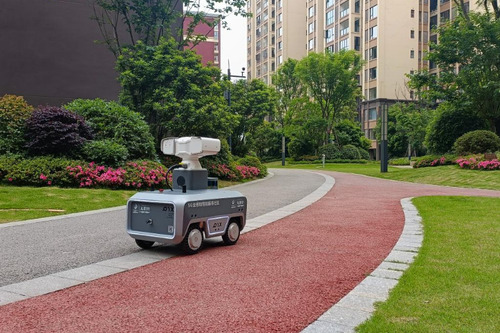 贵州省龙里县中铁国际生态城太阳谷5G全感知智能康养社区内的无人驾驶安防车在运行中(2022年5月23日摄)。新华社记者 刘续 摄