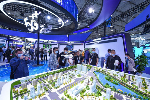 参会者在2021中国国际大数据产业博览会上参观5G智慧城市模型(2021年5月26日摄)。新华社记者 杨文斌 摄