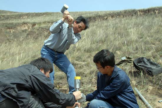 做起科研来,朱清科要求极为严格,对数据审得严,要求数据必须真实,绝不允许造假。对于杜绝造假,他有他的体会,“我们现在也在做土壤水分的观测,临时工用过一两年后容易造假,会动脑筋的人,知道怎么编数据了,这个时候一般就不能用了。”调查是每一位学生的必修课。每年,朱清科都会亲自带他们上好这门课。取土样,在艰苦的立地里只能靠人工打土壤水分测量管,十几斤的大锤,朱清科有的时候要抡几十下,他用行动告诉学生,在科研工作中绝不允许偷懒取巧,任何一个环节都要严格按照标准完成。