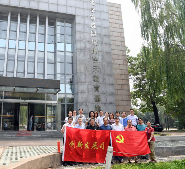 为深入推进“两学一做”学习教育常态化制度化,认真落实十八届中央纪委七次全会和国务院第五次廉政工作会议部署,6月13日,创新发展司党支部组织全司党员同志赴北京市监狱、北京市反腐倡廉警示教育基地开展警示教育活动,司党支部书记、司长许倞同志,副书记、副司长余健同志参加活动。