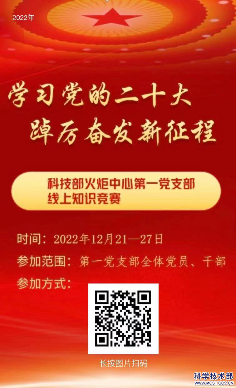 为持续深入学习宣传贯彻党的二十大精神,火炬中心第一党支部结合当前疫情防控形势,积极探索多样化学习模式,于2022年12月21至27日开展“学习党的二十大,踔厉奋发新征程”线上知识竞赛活动。