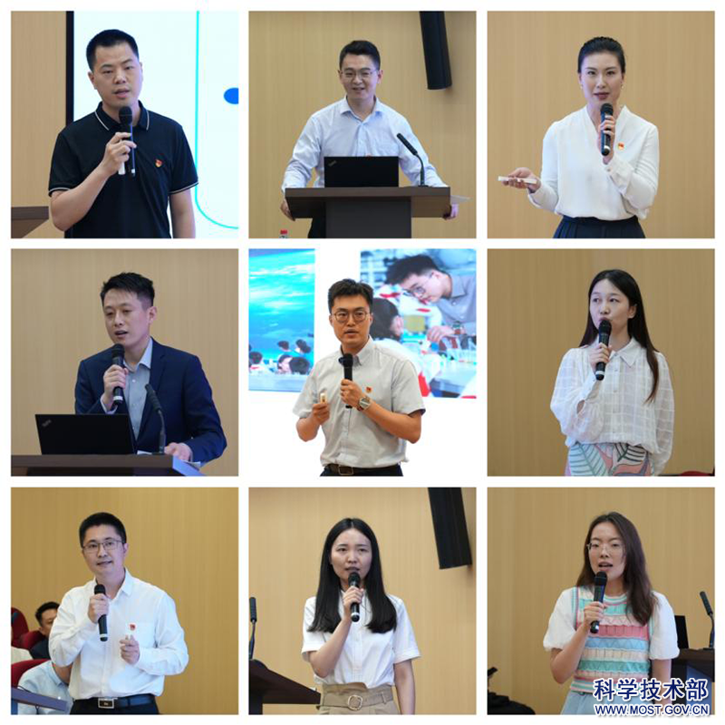 随后,来自4家单位的9名青年代表结合自身工作实际,分享了学用习近平新时代中国特色社会主义思想的思考感悟和实践成果。科技部政策法规与创新体系建设司陈阳同志立足岗位,分享了自己深入学习领会习近平总书记关于科技安全的重要论述,形成理论学习、钻研政策、调查研究相融合的心得体会;科技部基础研究司弯昭锋同志围绕学习领会习近平总书记关于科技创新的重要论述,交流了深度参与基础研究政策制定、全国重点实验室重组等重大任务的所思所悟;国家自然科学基金委员会王铭子同志从科技管理工作人员角度讲述了在国家自然科学基金管理过程中始终坚守“初心”,牢牢把握支持基础研究的职责使命;科技日报社陈春有同志分享了科技新闻战线青年勇于担当、积极策划,致力于讲好中国科技创新故事、国际科技合作与人才交流故事的亲身经历;中国科学技术馆黄践同志通过感悟习近平总书记关于科普工作的重要论述精神,与大家分享了在科技辅导员工作岗位上的众多感人瞬间;中国科学技术协会刘雅琦同志讲述了自己从习近平新时代中国特色社会主义思想中汲取思想养分,如何总结凝练智库综合研判的方法论;中国科学院严开祺同志作为全海深载人潜水器结构系统副主任设计师,通过所在创新团队的科研攻关故事,叙述了自己在推动国家核心科技创新发展的学习实践中深刻体会举国体制真理魅力和实践伟力的过程;北京市科委靳婷婷同志将真情服务首都近百家独角兽企业的故事娓娓道来,展现用实际行动助力北京市建设国际科创中心的青春风采;北京脑中心明天悦同志通过在北京脑科学与类脑研究中心学习和生活的一个个片段,向大家表达了向下扎根、奋斗向上、让大脑发光的信心和决心。