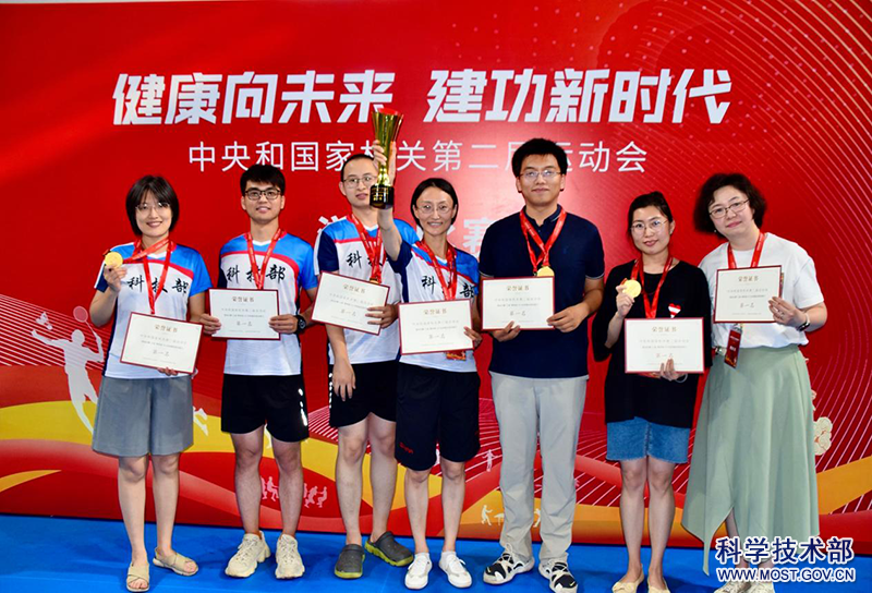 2023年7月19日,由中央和国家机关工会和国家体育总局联合举办的中央和国家机关第二届运动会之“游泳比赛青年组4*50米蛙泳接力”比赛在国家体育总局游泳训练馆举行。科技部代表队勇夺乙组第一名,创造了又一佳绩。