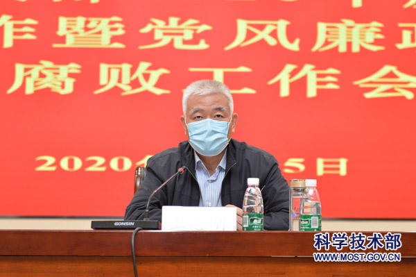 5月15日上午,科技部召开2020年度党建工作暨党风廉政建设和反腐败工作会议,深入贯彻党的十九大和十九届二中、三中、四中全会以及十九届中央纪委四次全会精神,全面落实中央和国家机关党的建设工作会议精神,总结2019年科技部机关党建和党风廉政建设工作情况,部署2020年工作任务。部党组书记、部长王志刚,中央纪委国家监委驻科技部纪检监察组组长、部党组成员龚堂华在会上作讲话,全体部领导出席会议。会议由部党组成员、副部长、机关党委书记李萌主持。
